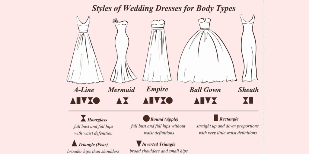 To ensure that the wedding dress looks perfect on your body type, choosing the right silhouette is necessary. To know different types of wedding gown silhouettes and which is best to suit your body type, read the below guide: